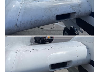 Thorough cleaning of aircraft surfaces using paint-safe, aviation-approved detergents for a spotless, corrosion-free finish.